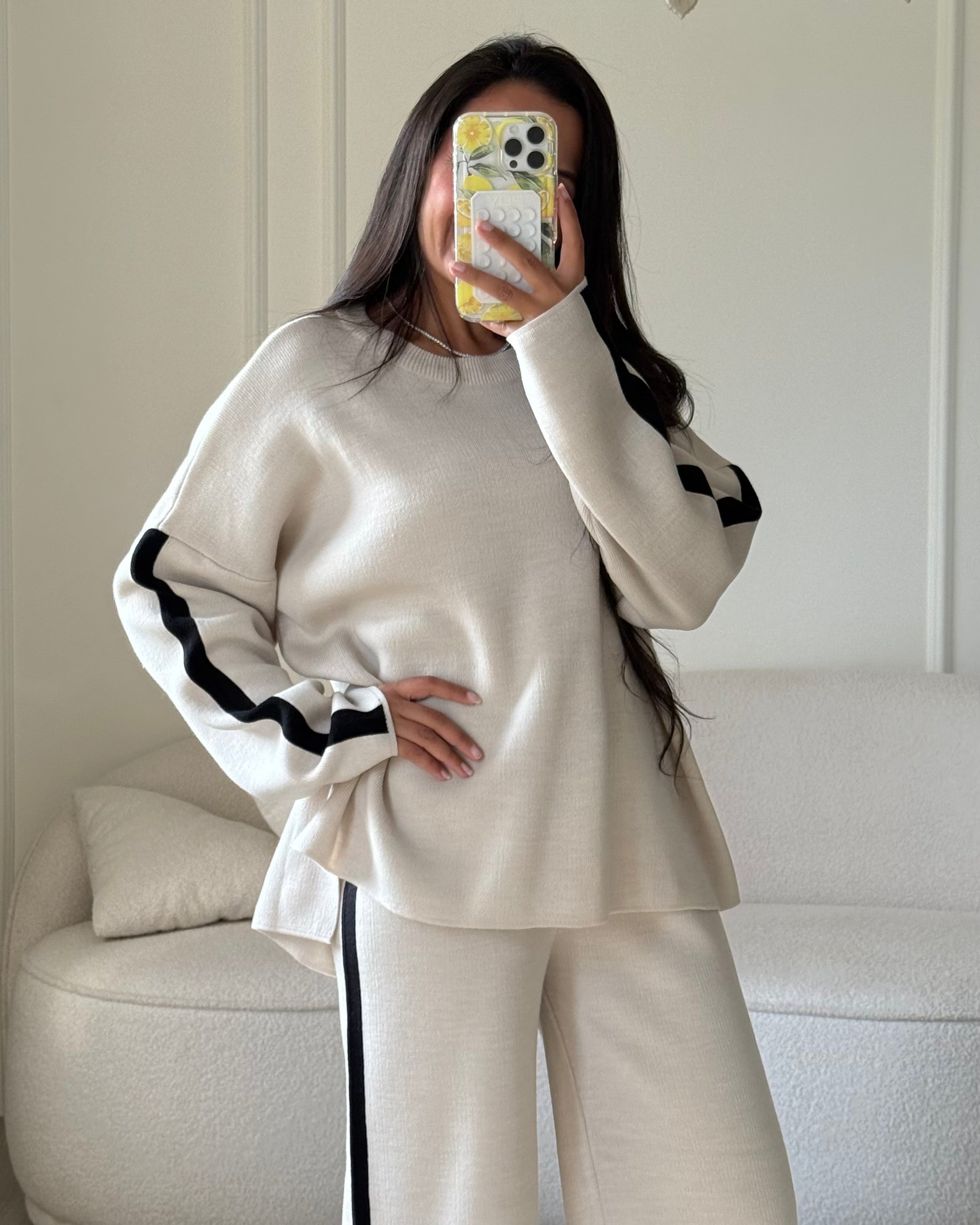 Knitwear Pullover – Sleeve Stripes (Round Neck)