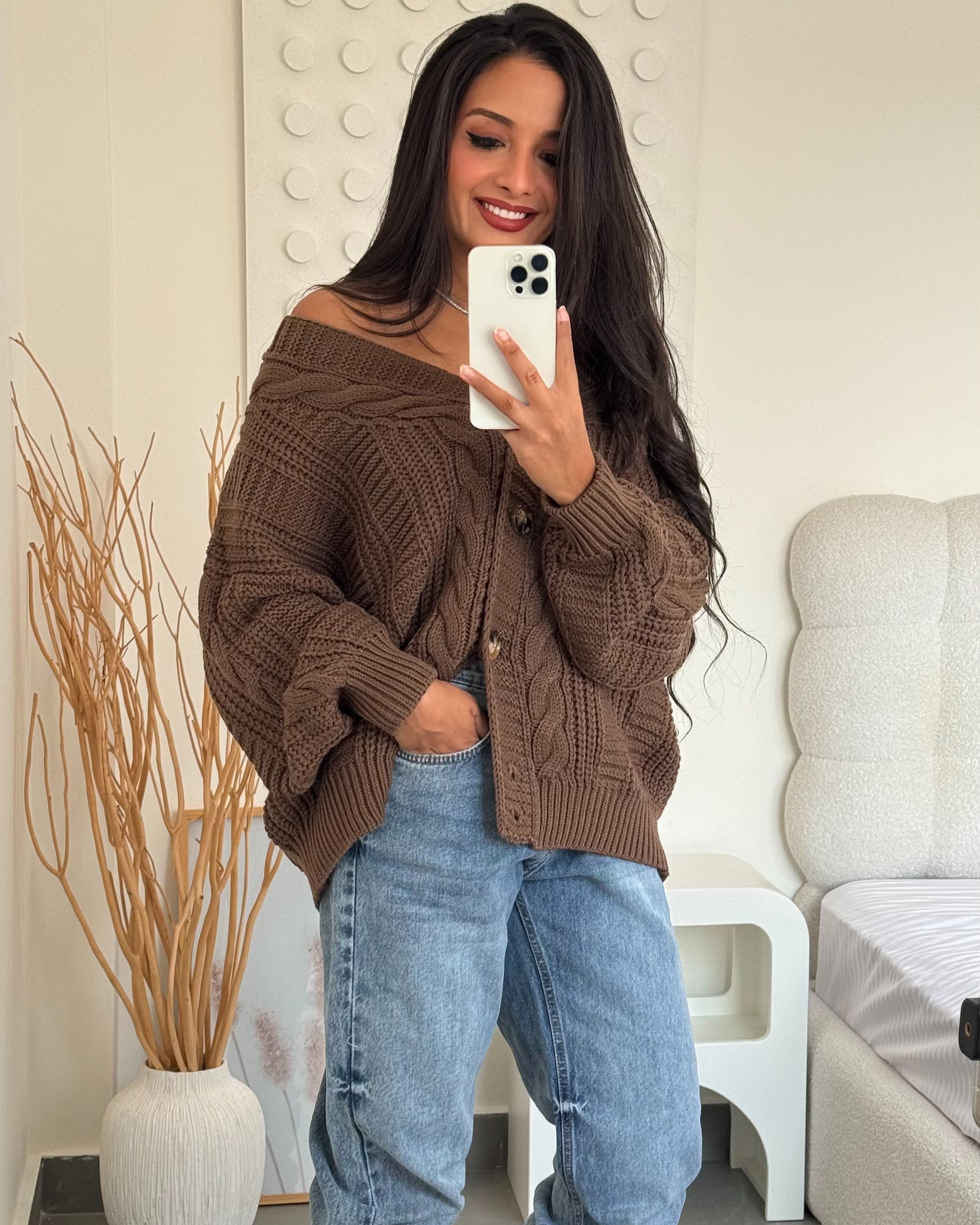 Knitwear Cardigan – Buttoned (Braided Pattern)